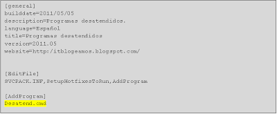 - Se crea una carpeta svcpack, en donde se agrega el archivo Desatend.cmd